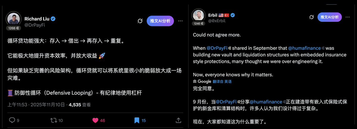 Ma a differenza della struttura di prestito ciclico tradizionale, fragile e ad alto rischio, il volano dei profitti di HUMA è costruito su una struttura incentrata sulla stabilità, come menzionato più volte da @DrPayFi e @0xErbil, utilizzando "cicli difensivi" per affrontare 3 principali rischi strutturali: