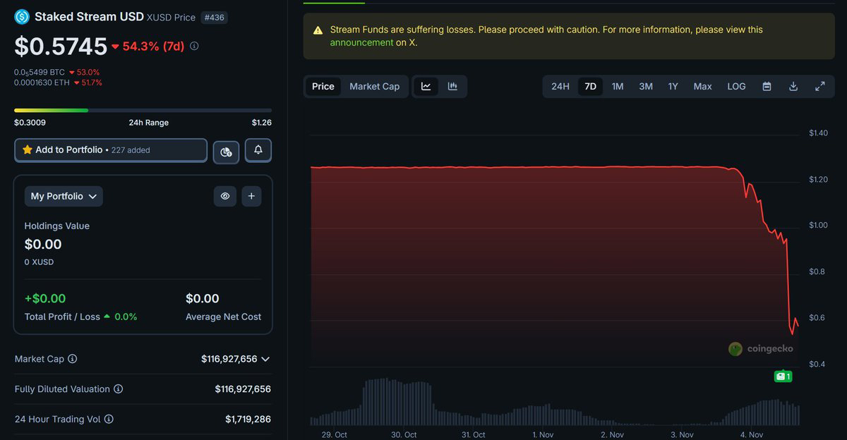 ▶︎ Ad esempio, il crollo di xUSD di Stream Finance: