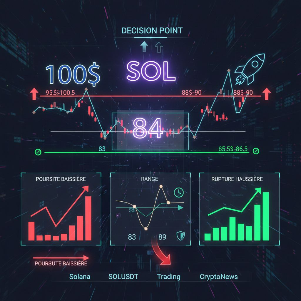 Dopo aver subito una forte perdita passando da 100 $ a un minimo verso 60 $, Solana si stabilizza attualmente attorno agli 84 $. Sul grafico 4H, il mercato "si raffredda": siamo in piena fase di compressione laterale. È la famosa zona di respirazione dove i trader osservano il volume prima del prossimo movimento.