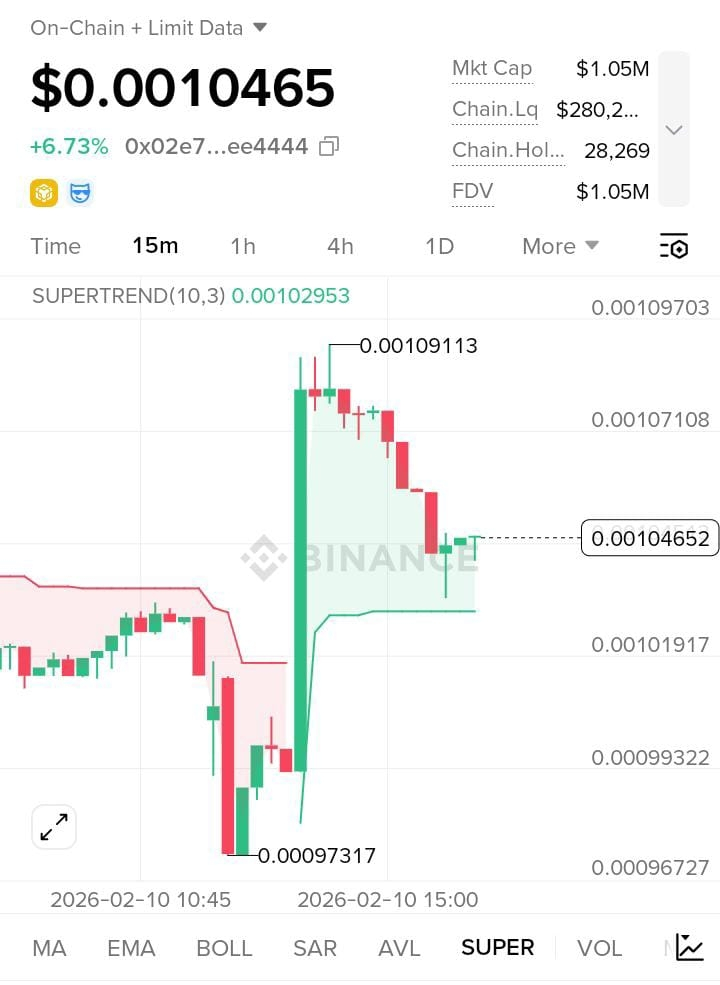 PALU ne strong bounce diya hai 0.00097 se aur abhi SuperTrend ke upar hold kar raha hai ✅