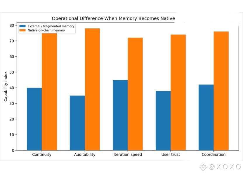 Yet most blockchain environments still treat memory as an externality. Data may exist somewhere, but it is not embedded into the operational fabric of the system. It is retrievable, but not native. Persistent, but not coordinated.