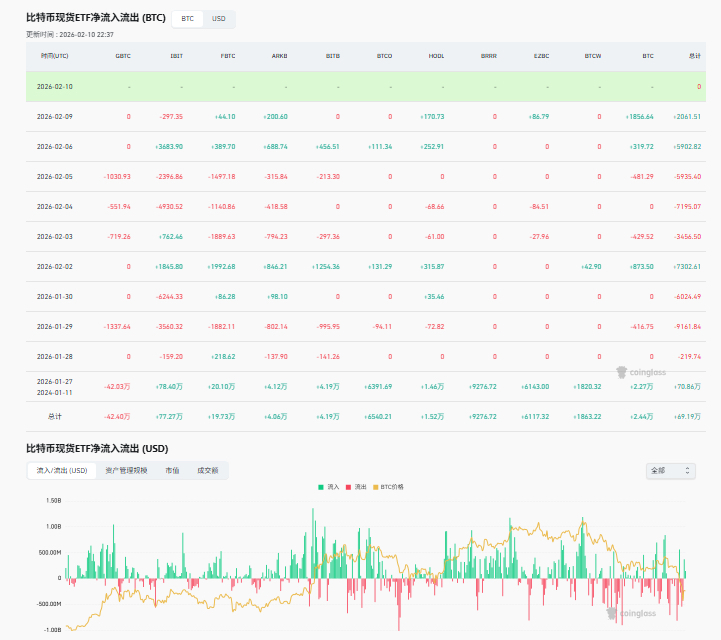 Si prega di guardare i dati del flusso di fondi ETF di Coinglass che ho estratto.