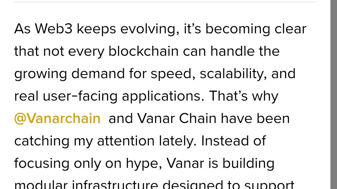 Con l'evoluzione del Web3, diventa chiaro che non tutte le blockchain possono gestire la crescente domanda di velocità, scalabilità e applicazioni reali rivolte agli utenti. Ecco perché @Vanarchain e Vanar Chain hanno attirato la mia attenzione ultimamente. Invece di concentrarsi solo sull'hype, Vanar sta costruendo un'infrastruttura modulare progettata per supportare app decentralizzate ad alte prestazioni, specialmente in aree come il gaming, le esperienze digitali e le piattaforme interattive.