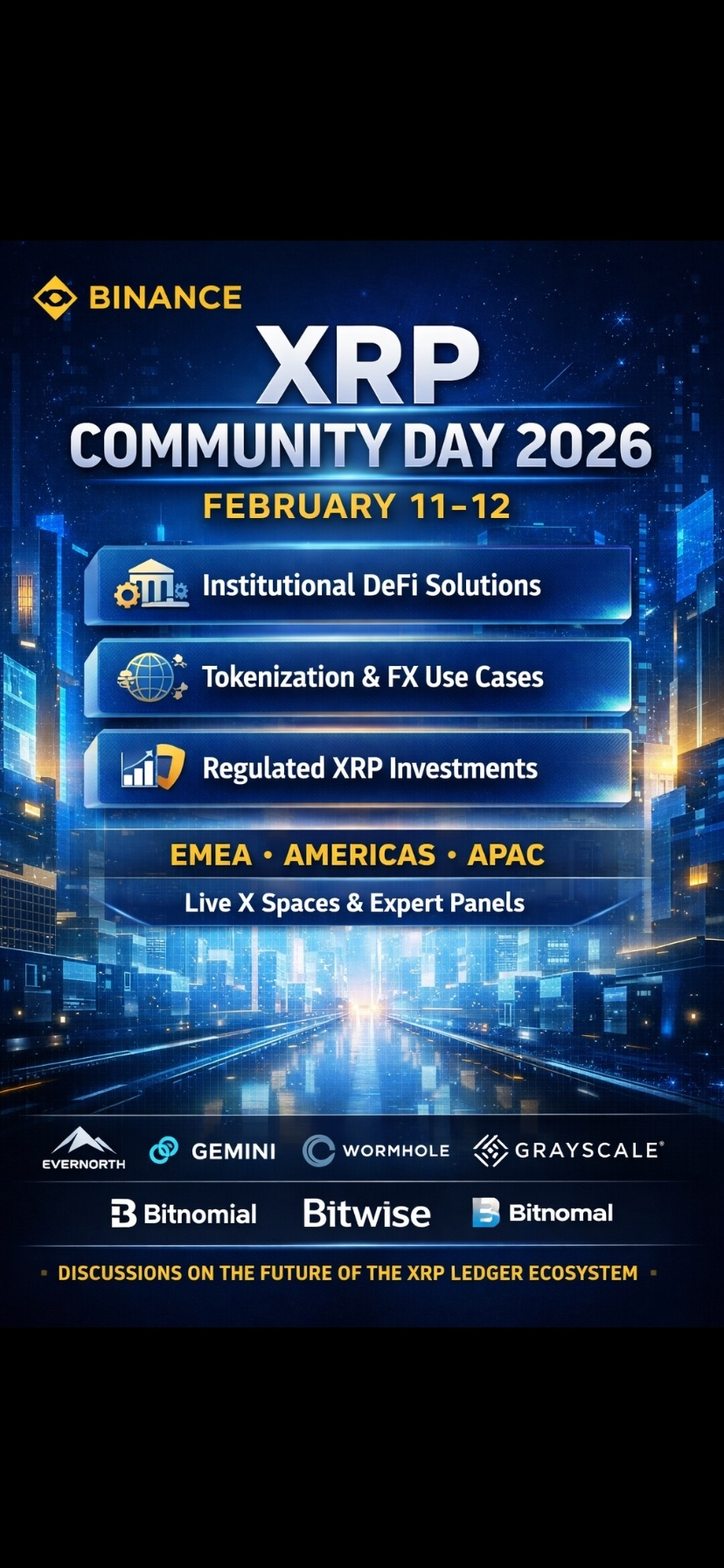 XRP Community Day 2026 will feature a series of live X Spaces sessions covering regions including EMEA, the Americas, and APAC. Participating organizations such as Evernorth, Gemini, and Wormhole are expected to share insights on interoperability, custody, and enterprise blockchain use cases within the XRP ecosystem.