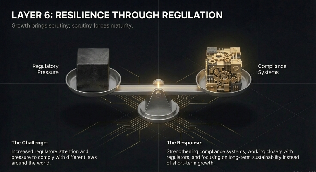 Il viaggio di Binance non è stato privo di sfide. Man mano che cresceva, ha affrontato una maggiore attenzione e pressione normativa per conformarsi a diverse leggi in tutto il mondo. Queste sfide hanno costretto Binance a maturare come azienda, rafforzare i sistemi di conformità e lavorare più a stretto contatto con i regolatori.