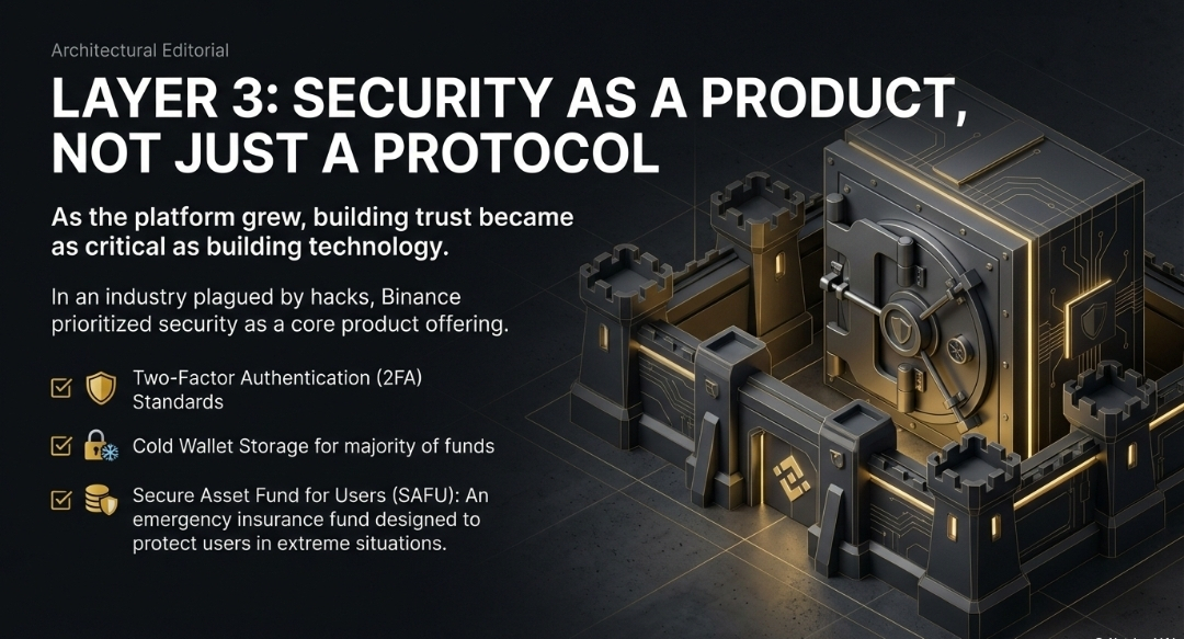 Man mano che Binance cresceva, ha posto grande enfasi sulla costruzione della fiducia con i suoi utenti. La sicurezza è diventata una massima priorità, specialmente dopo che l'industria ha affrontato diversi attacchi di alto profilo. Binance ha introdotto misure di sicurezza solide come l'autenticazione a due fattori, lo storage in cold wallet e il suo Fondo di Sicurezza per gli Utenti (SAFU), progettato per proteggere gli utenti in situazioni estreme.