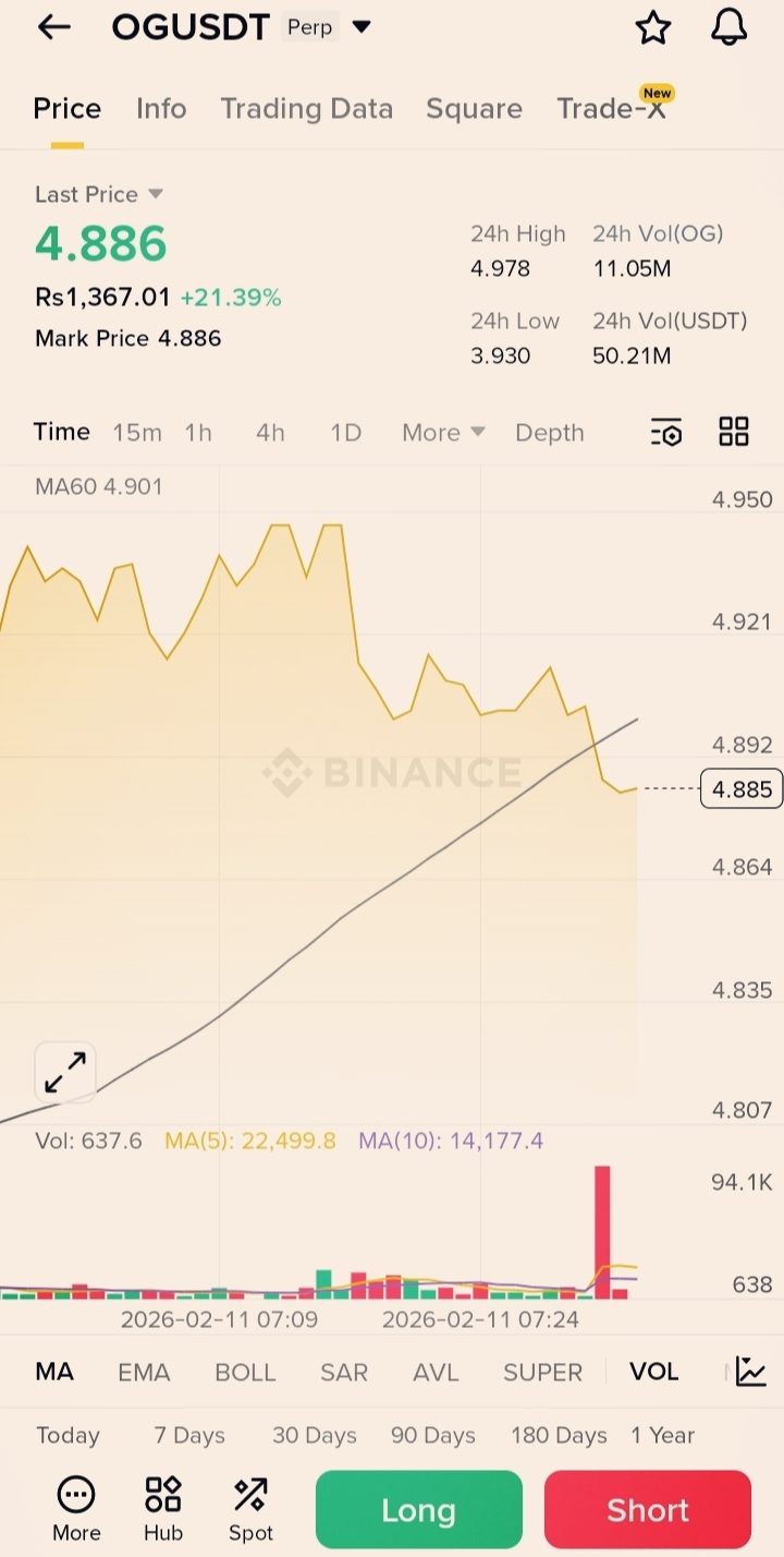 OG has delivered a strong +21% impulse, but price is now hovering right around MA60 (4.90) — a key decision zone. Momentum is bullish, yet short-term exhaustion is possible after such a sharp move. Volume supported the push, but continuation needs a clean hold above MA60.