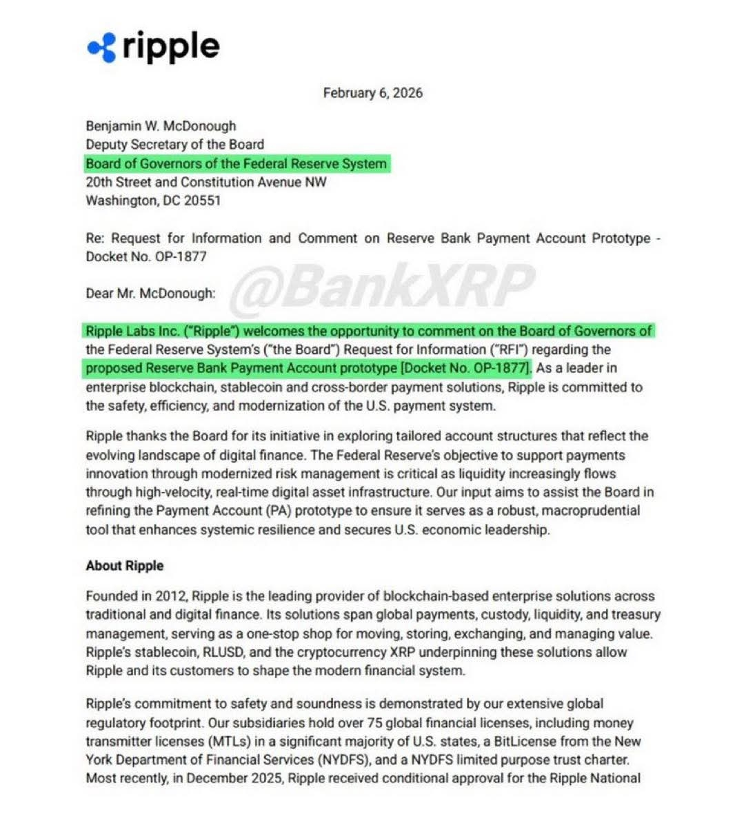 Docket OP-1877 could reshape global liquidity. If $XRP Ripple secures a Federal Reserve Payment Account, RLUSD reserves would be held directly at the Fed, removing commercial bank counterparty risk