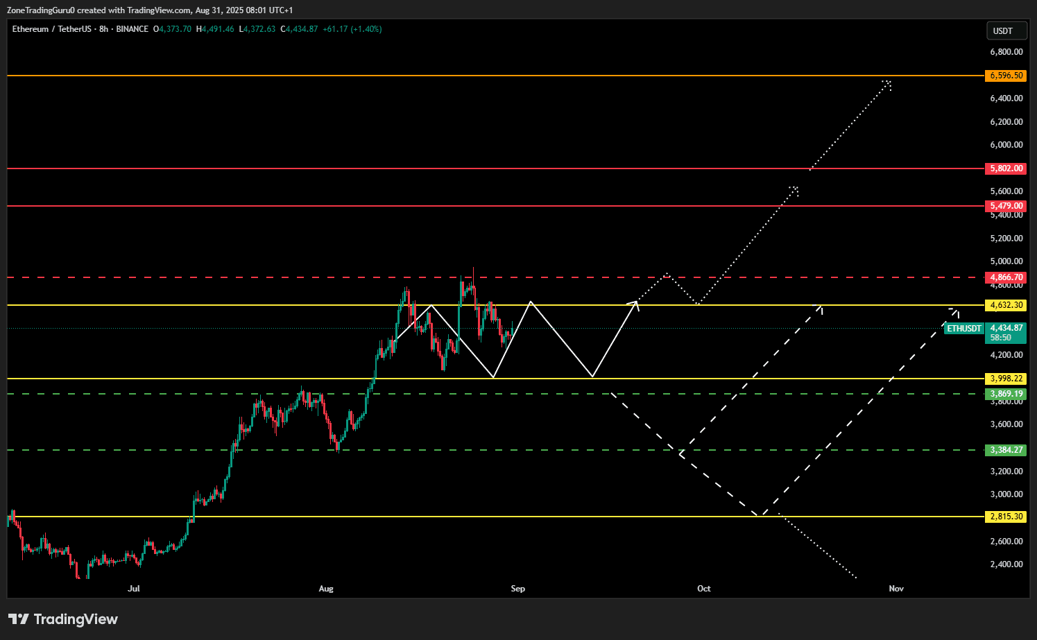 $ETH probabilmente si muoverà lateralmente nell'intervallo 4632-3998 durante questo periodo. 🔥