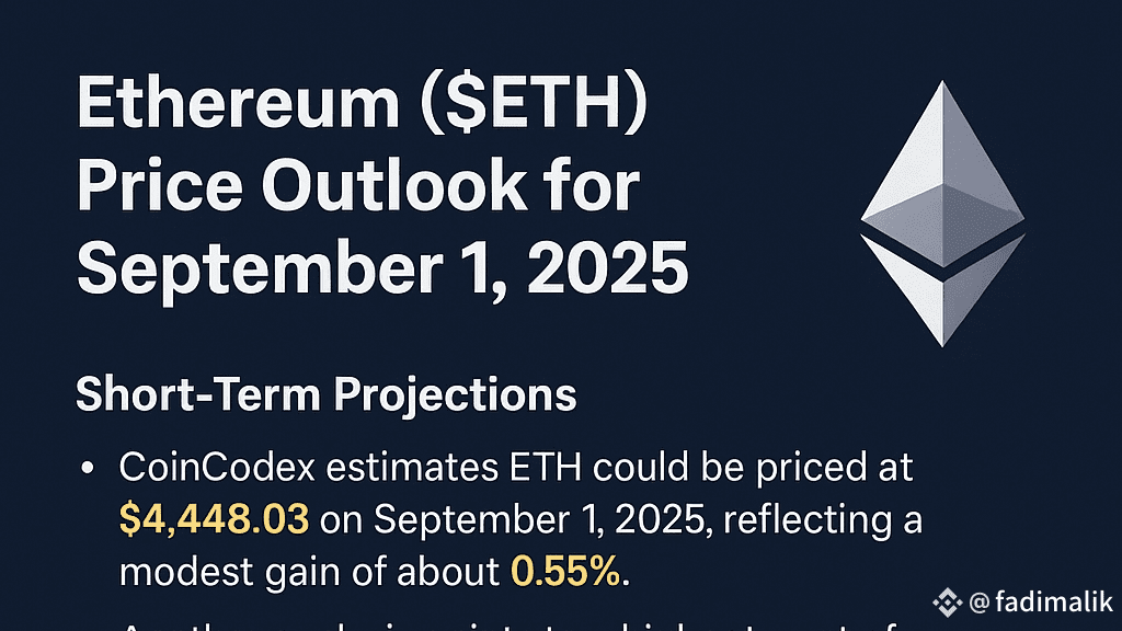 Ad oggi, Ethereum ($ETH ) sta negoziando intorno a $4,462. Guardando avanti al 1 settembre 2025, la maggior parte delle previsioni suggerisce che il prezzo potrebbe chiudere sopra i livelli attuali.