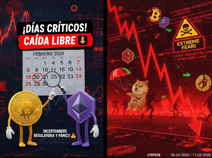 El mercado de criptomonedas ha vivido una semana de extrema volatilidad, marcada por una corrección profunda que ha llevado a los activos principales a niveles no vistos en meses.Entre los eventos más impactantes de los últimos 5 días (del 6 al 11 de febrero de 2026) están: