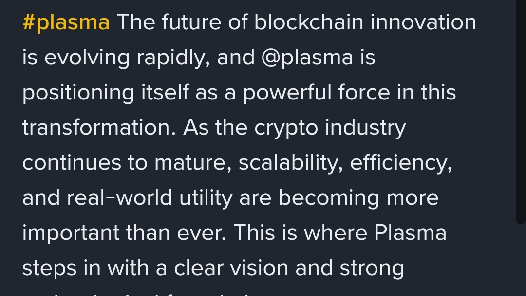 Inoltre, Plasma si allinea con l'obiettivo più ampio del Web3 — dare potere agli utenti con maggiore controllo sui loro beni e dati. Fornendo soluzioni scalabili ed efficienti, Plasma contribuisce a un futuro blockchain più accessibile e inclusivo. Man mano che l'adozione aumenta a livello globale, progetti come @plasma giocheranno un ruolo cruciale nella definizione della prossima generazione di tecnologia decentralizzata.