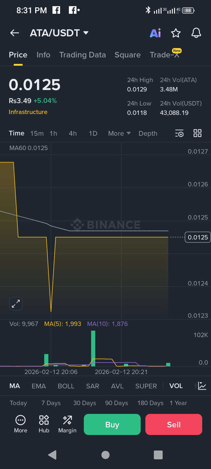 Current ATA price is around $0.0125 (ATA/USDT) with slight intraday movement, showing recent volatility.