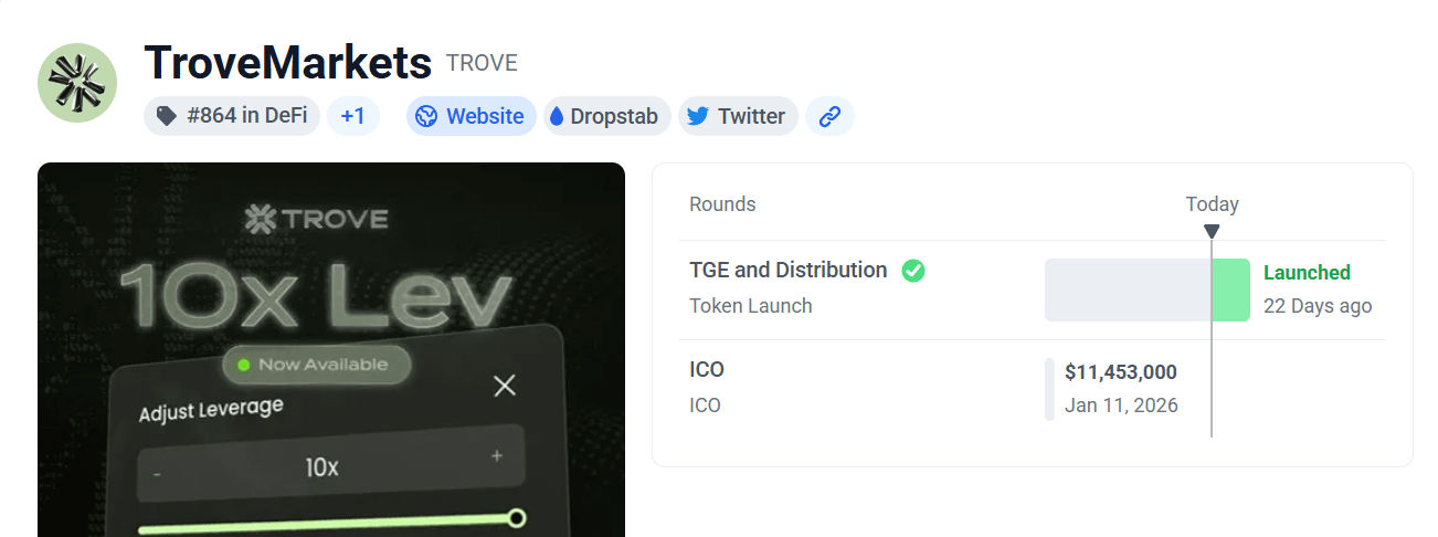 是这样的:一个叫 Trove Markets 的项目,喊着要在 Hyperliquid 上建永续合约协议,听起来高大上,还通过 ICO 猛吸了上千万美元(1150万美元左右)。