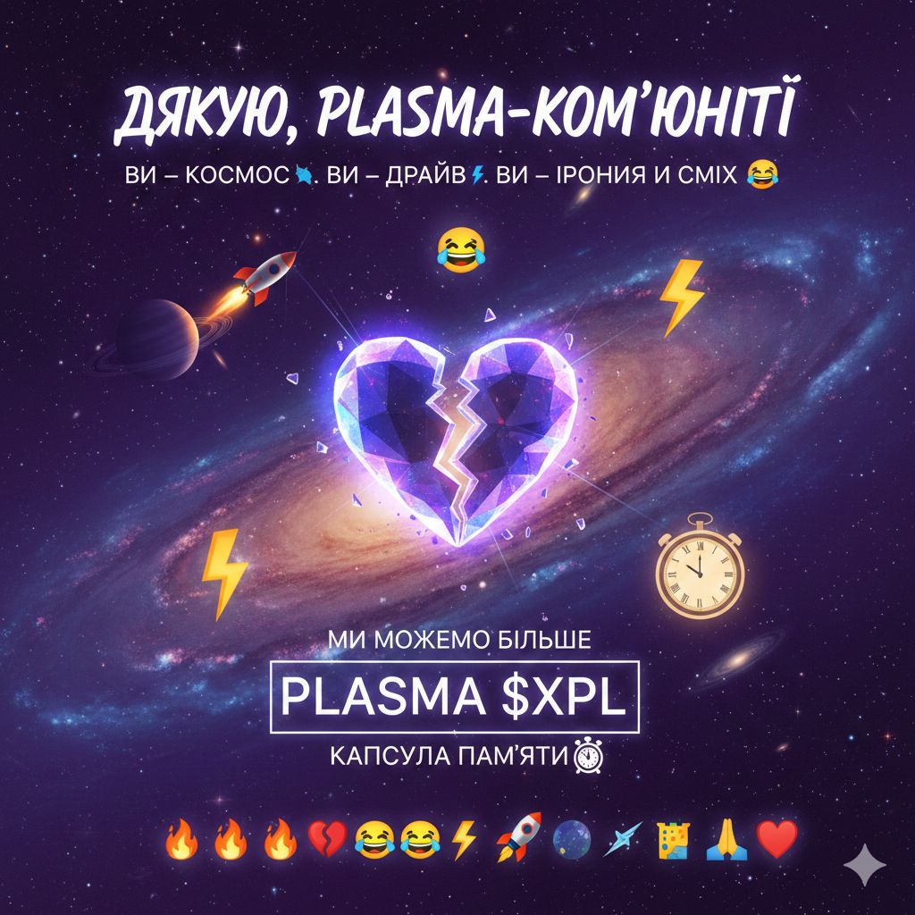 Я хочу сказати величезне ДЯКУЮ 🙏 кожному, хто був поруч. Ви — ті самі люди, які роблять криптосвіт живим, справжнім і трішки божевільним 🤪. Без вас Plasma була б просто ще одним токеном у нескінченному списку. Але завдяки вам вона стала історією, мемом, емоцією, спогадом.