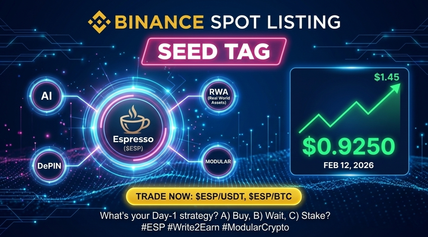 L'attesa è finita! Espresso ($ESP) ha ufficialmente raggiunto Binance Spot oggi, e il volume è assolutamente pazzesco. Scambiando attorno a $0.92, stiamo vedendo una classica fase di accumulo "Seed Tag".