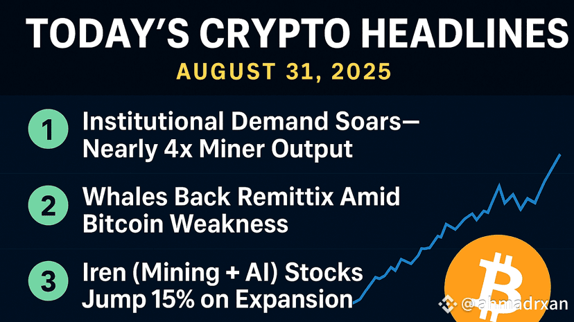 1) Le istituzioni stanno ingurgitando ~1,755 BTC/giorno—quasi 4× l'offerta dei miner—stringendo la liquidità del mercato.