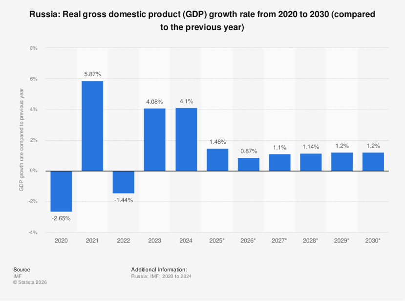 Российские официозные прогнозы — рост 1–2%, но им уже мало кто верит.