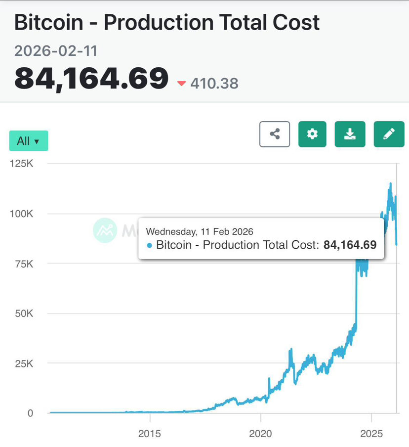 Quando il prezzo attuale viene confrontato con il costo di produzione, il test passa dall'emozione alla struttura. I dati mostrano che il costo medio per estrarre un Bitcoin è aumentato a circa 84,164 USD, più del 20 percento sopra il prezzo di mercato. Ciò significa che una parte significativa dei miner sta operando al di sotto del pareggio. Storicamente, i periodi in cui il prezzo si scambia vicino o al di sotto del costo di produzione non sono momenti di debolezza della rete, sono momenti di efficienza forzata, in cui i partecipanti più deboli vengono rimossi e il sistema è spinto a riequilibrarsi per la sopravvivenza a lungo termine.