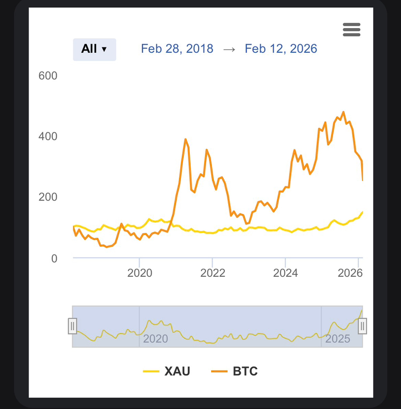 Durante i periodi di instabilità macroeconomica, i mercati tendono a tornare prima sugli asset che preservano il potere d'acquisto, prima di espandersi in alternative più scarse e volatili. L'oro tende a riflettere la domanda difensiva a livello di sistema, mentre Bitcoin si avvicina alla stessa tendenza con un ritardo a causa della sua sensibilità alla liquidità, al sentiment e ai flussi speculativi. Questo fa sì che Bitcoin si discosti dall'oro nel breve termine, ma converga strutturalmente nel lungo termine man mano che la narrativa di scarsità e preservazione del valore diventa più dominante.