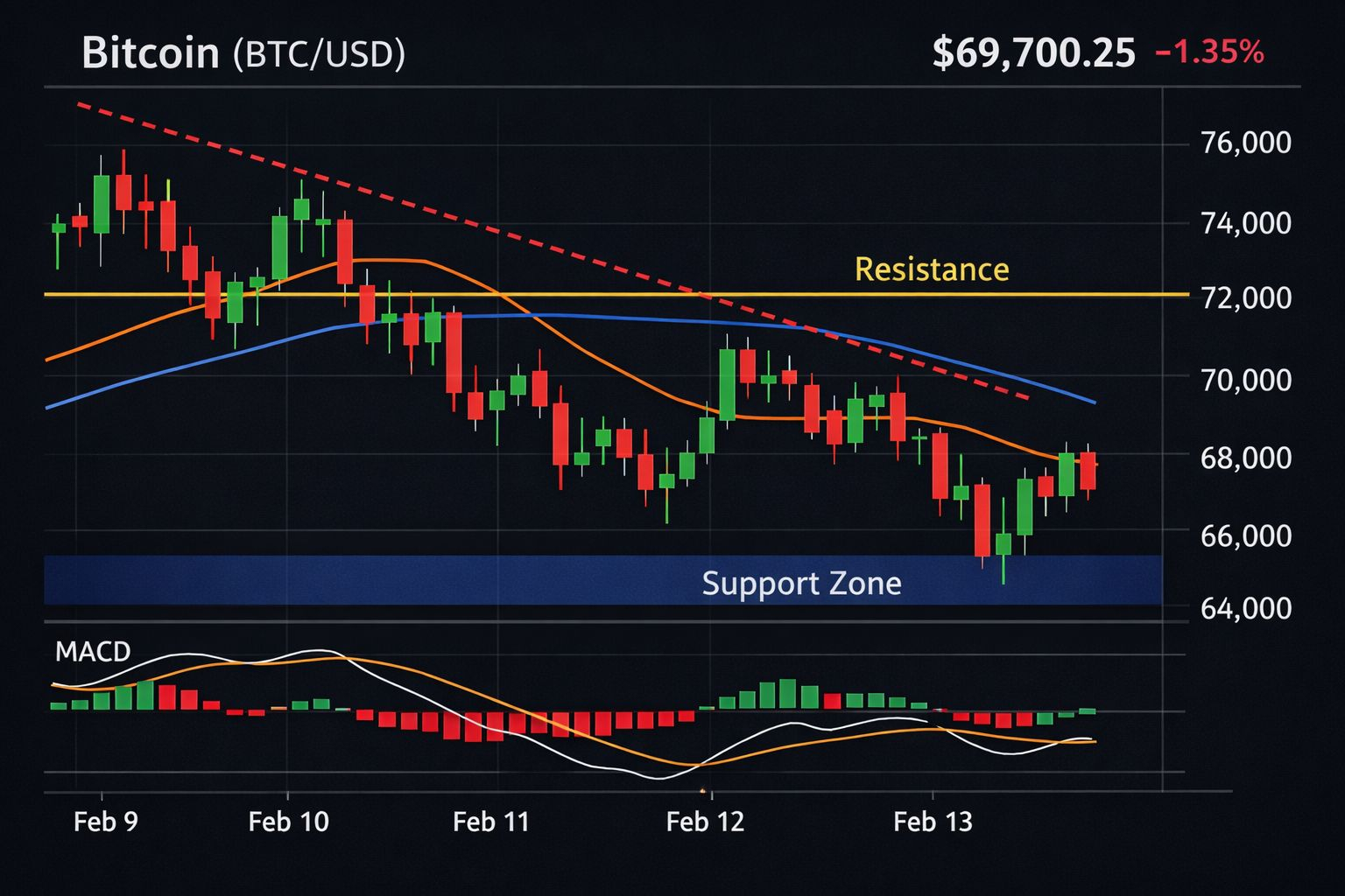 BTC is in a corrective phase with short-term downward pressure, but long-term fundamentals remain intact. Traders are watching support zones around current levels and resistance near $75K–$78K for signs of trend reversal.