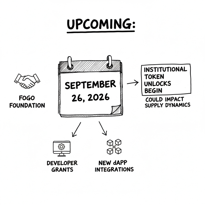 .Upcoming: Mark your calendar for September 26, 2026—institutional token unlocks begin, which could impact supply dynamics. Meanwhile, the Fogo Foundation continues ecosystem expansion with developer grants and new dApp integrations