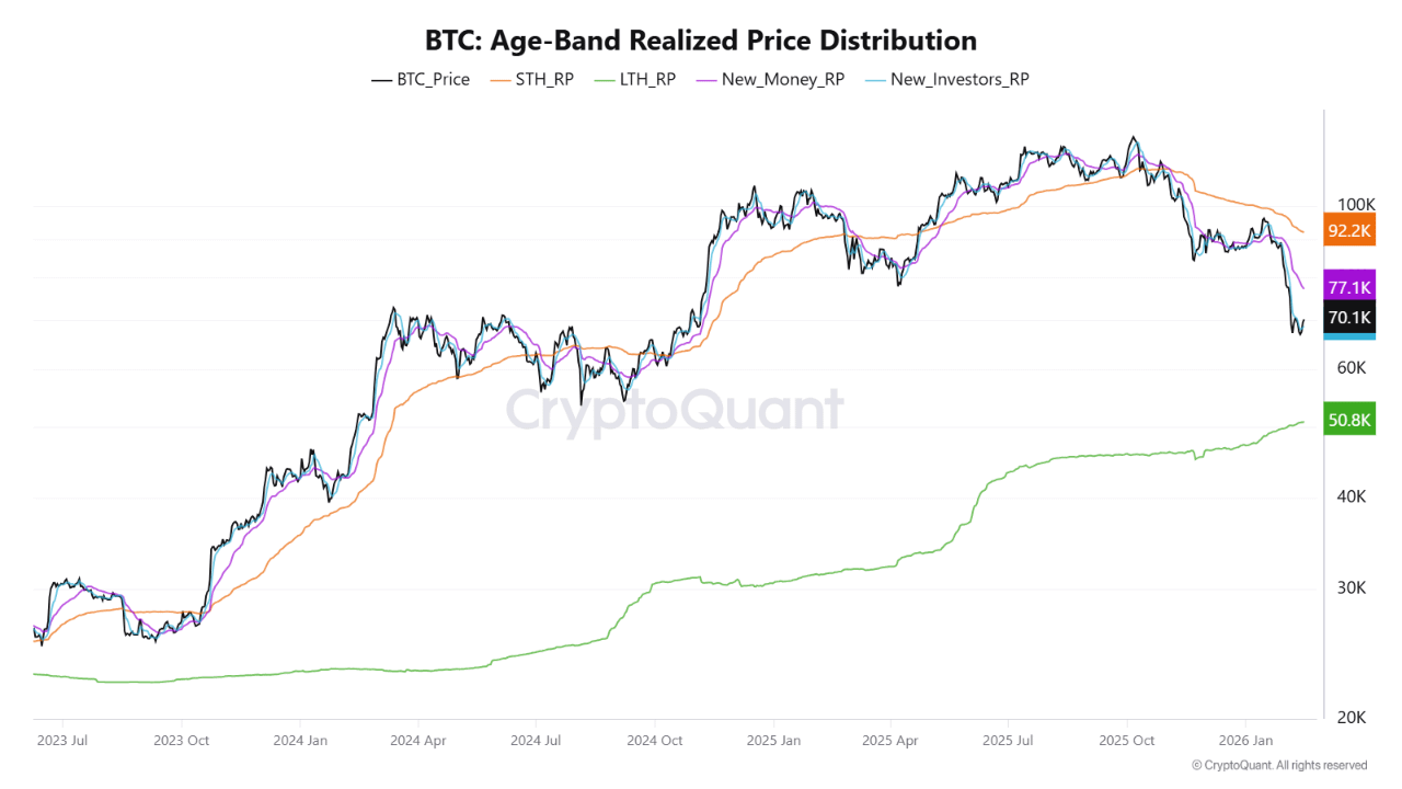 Oggi sembra diverso. La correzione attuale ha raggiunto un picco di appena il 40% di perdite per i detentori a breve termine, quasi trenta punti al di sotto della media storica del 68%. Il prezzo ha trovato supporto a $66,928 e si è ripreso sopra i $70,000, con perdite ora al 31%. I detentori a lungo termine rimangono redditizi del 27% senza segnali di capitolazione.