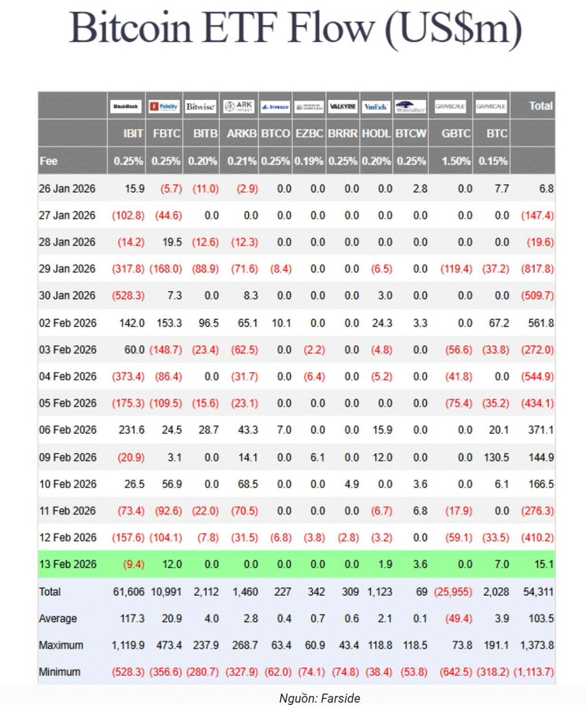 Dù bối cảnh vĩ mô tích cực hơn khi lạm phát hạ nhiệt, dòng tiền ETF vẫn thiếu nhất quán. Chỉ trong vài ngày giữa tháng 2, thị trường ghi nhận hàng trăm triệu USD bị rút ròng, cho thấy tổ chức đang thu hẹp vị thế thay vì tích lũy. Các nhịp tăng giá vì thế bị tận dụng để tái cân bằng rủi ro, không phải để mua đuổi.