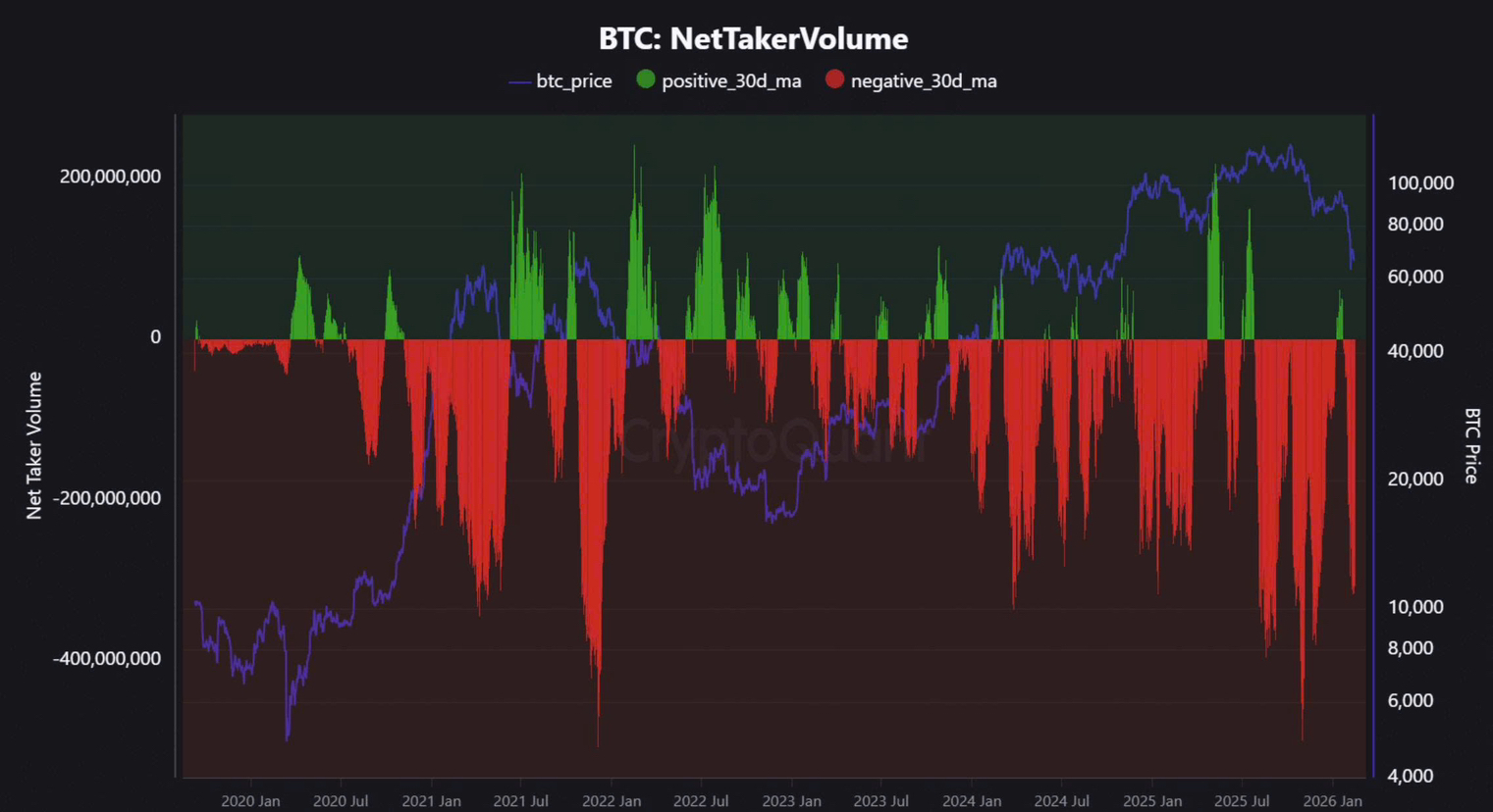 Trong bối cảnh nhu cầu giao ngay suy yếu và chênh lệch giá trên Coinbase duy trì tiêu cực. Khối lượng mua ròng thường xuyên âm hàng trăm triệu USD, có lúc chạm ngưỡng cực đoan gần -450 triệu, cho thấy phe bán liên tục áp đảo.