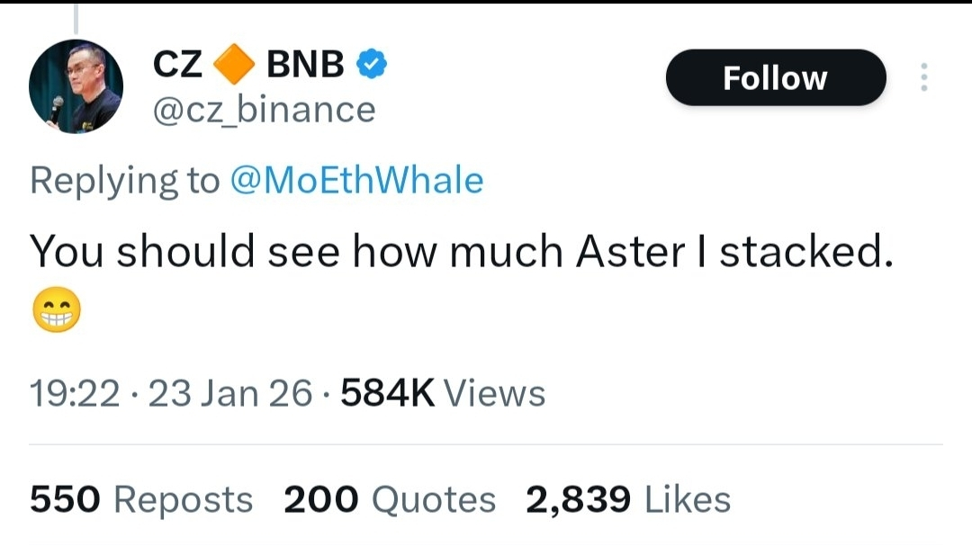Nel mercato delle criptovalute vince non chi ha visto per primo il tweet, ma chi ha letto correttamente la fase del mercato #CZ #Aster