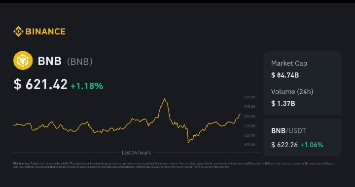 📈 Azione di prezzo live di BNB oggi: prezzo intorno a ~$610–$630 USD con movimenti intraday in quell'intervallo (24h minimo ~$605, massimo ~$629). �