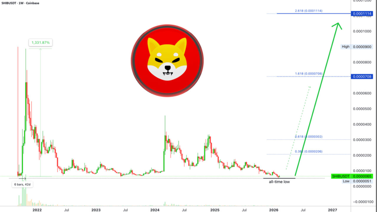L'ATL è arrivato la settimana scorsa dopo che SHIBUSDT ha chiuso cinque settimane consecutive in rosso e anche una grande tendenza al ribasso da marzo 2024. Quasi due anni di azione ribassista.