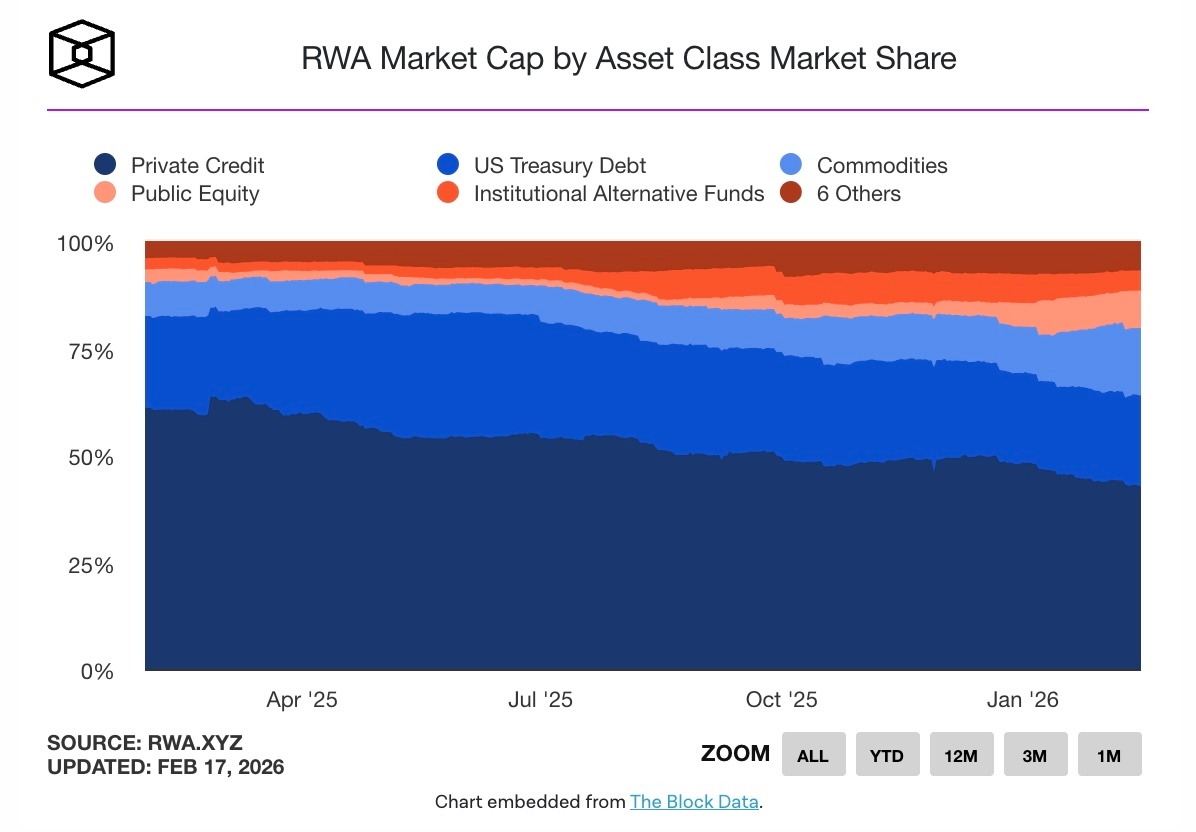Động lực tăng trưởng không chỉ giới hạn ở trái phiếu chính phủ. Tuần này, Wintermute đã triển khai giao dịch tổ chức cho vàng token hóa và dự báo phân khúc hàng hóa token hóa có thể đạt 15 tỷ USD vào năm 2026. Hiện nhóm hàng hóa đã đóng góp hơn 5 tỷ USD trong tổng giá trị RWA trên Ethereum.