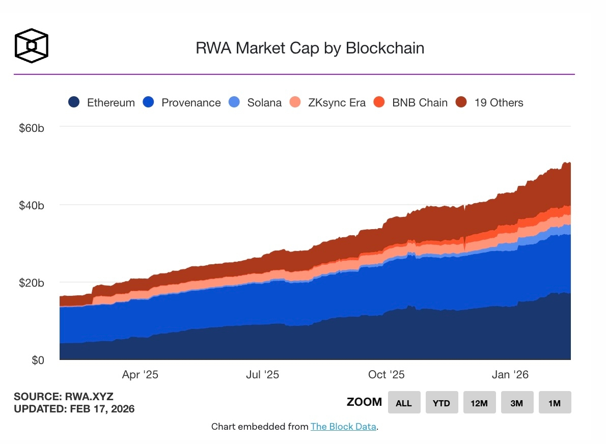 Thị trường tài sản thực được token hóa (RWA) trên mạng chính của Ethereum đã vượt mốc 17 tỷ USD giá trị phát hành, theo dữ liệu từ The Block. Động lực tăng trưởng đến từ việc các định chế tài chính lớn như BlackRock và JPMorgan tiếp tục đưa các quỹ và sản phẩm tài chính truyền thống lên onchain.