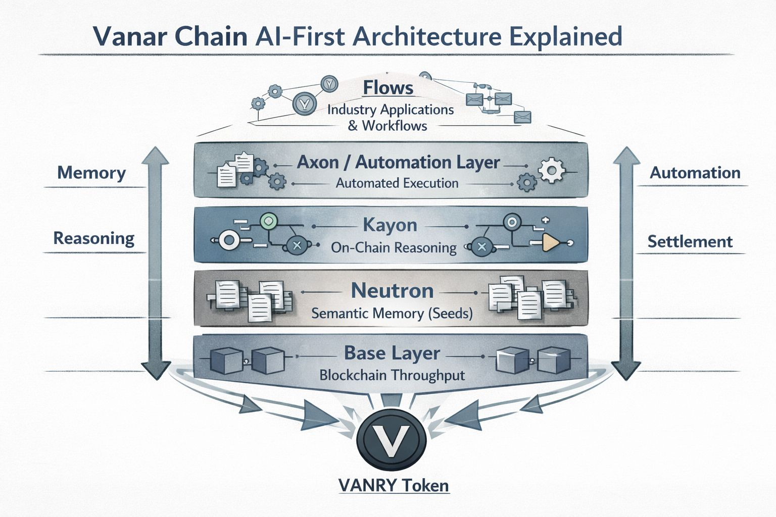 There's a specific thing that breaks when you try to retrofit AI onto legacy blockchain infrastructure. AI systems don't just need fast transactions — they need memory, reasoning, automation, and settlement. Four completely separate primitives. Miss one and the whole thing collapses or moves off-chain where you lose verifiability entirely. Vanar Chain is built around a five-layer stack that addresses each of these natively. The base chain handles throughput. Neutron handles semantic memory — compressing documents, legal files, financial records directly on-chain into what Vanar calls "Seeds," queryable objects that an AI can actually read and reason over. Kayon handles on-chain reasoning without oracles or middleware. Axon handles automation. Flows handles industry-specific application.