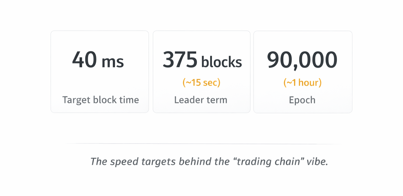 Fogo also backs the speed story with concrete testnet numbers. Their testnet targets 40 millisecond blocks. They note a leader term of 375 blocks (about 15 seconds at that pace) and epochs of 90,000 blocks (about one hour). Those numbers are very “trading chain” energy, and I mean that in a good way.