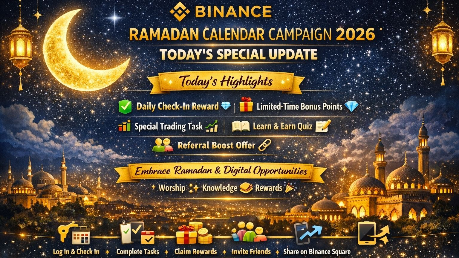 Nell'atmosfera benedetta del Ramadan 2026, la Campagna del Calendario Ramadan di Binance sta guadagnando forte popolarità all'interno della comunità. Oggi porta nuove opportunità, nuove ricompense e sorprese entusiasmanti per gli utenti partecipanti. 🎉💥