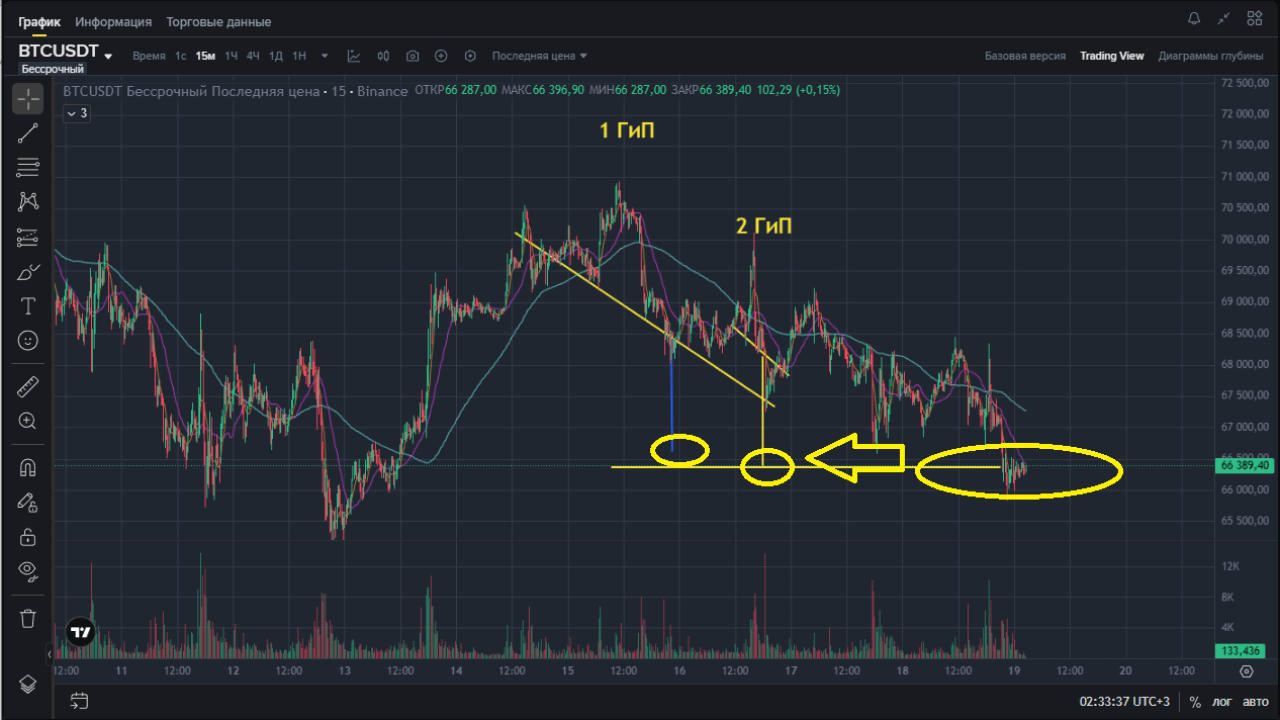 Si può presumere che stiamo passando a uno scenario laterale e il mercato inizierà a oscillare lateralmente tra 72 e 65 mila.