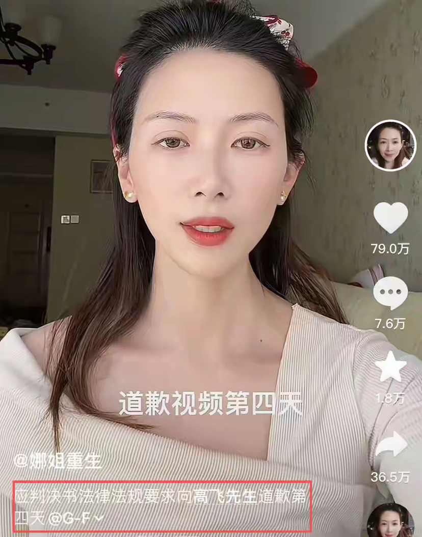 “大家好,我是娜姐,今天我来道歉。我不该在网上发布不当言论,曝光丈夫高飞出轨同事韩润的事,在这里我郑重道歉。”