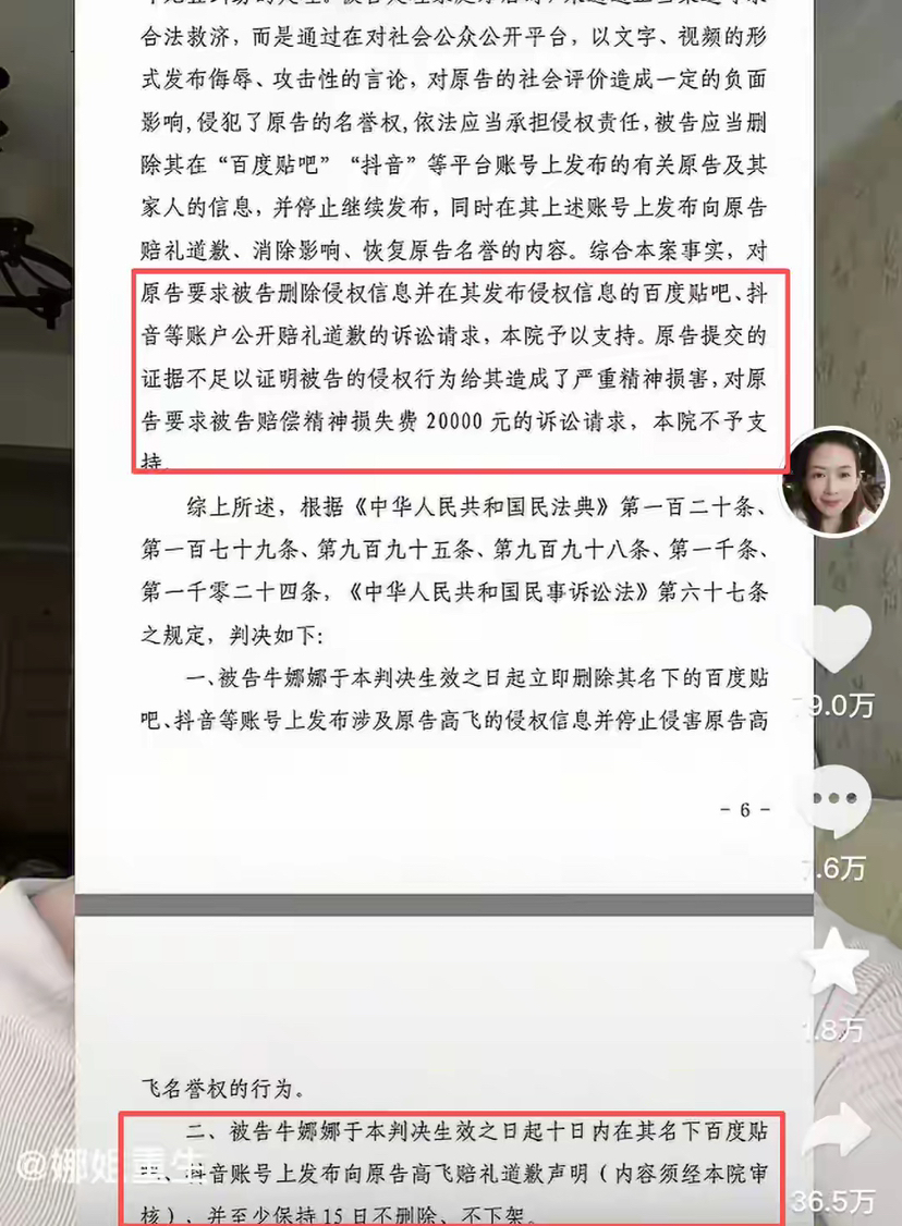 一般人遇到这种事,第一反应都是情绪上头,要么哭要么闹,要么硬刚拒不执行,最后反而把自己逼进了死胡同。但娜姐不一样,她拿到判决的那一刻,没有纠结“我凭什么道歉”,而是一眼看透了这件事的本质: