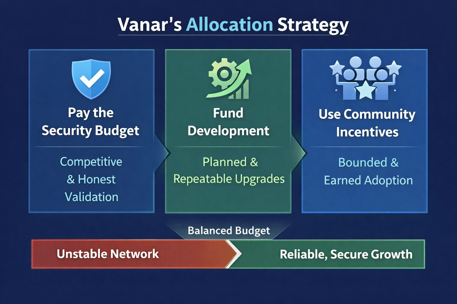 Vanar’s allocation signals a different posture. Pay the security budget so validation remains competitive and honest. Fund development so upgrades are planned and repeatable, not heroic. Use community incentives, but keep them contained so adoption is earned through product and reliability, not only through rewards.