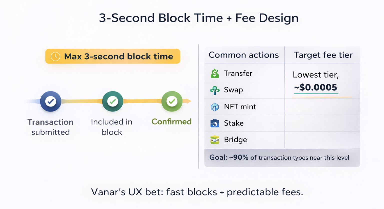 Fee consistency in real conditions: Vanar targets the lowest tier around $0.0005, and it also states the goal that 90% of transaction types stay near that level.