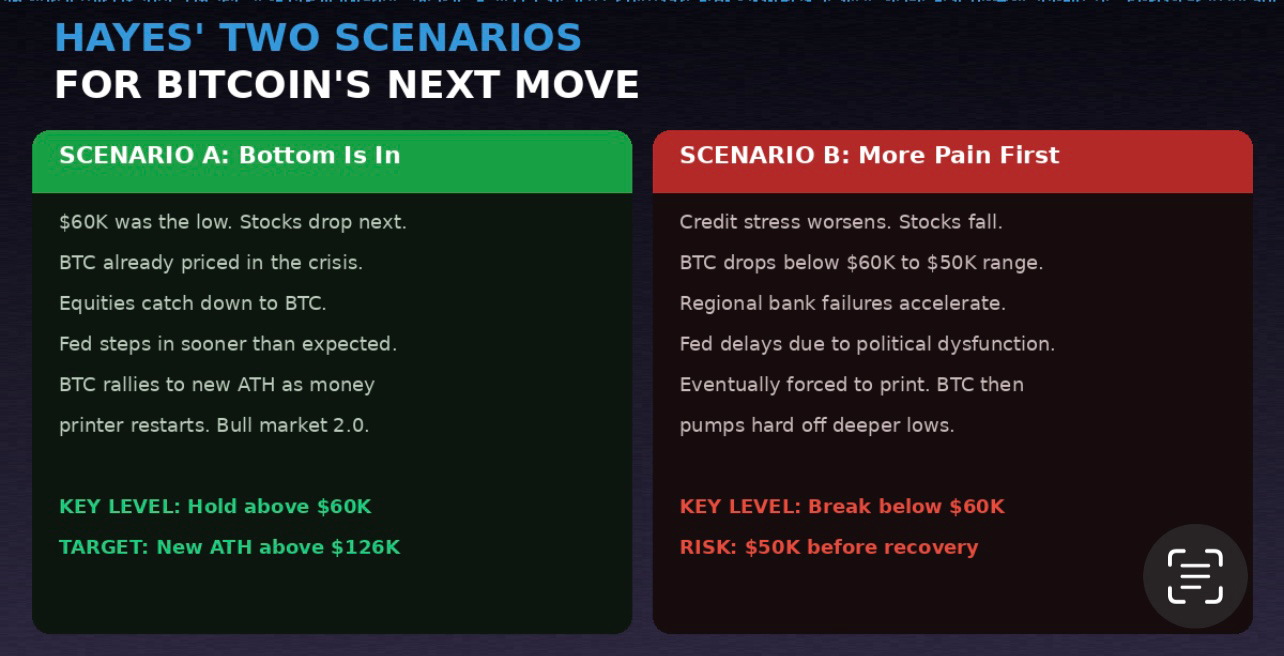 Il problema del tempismo. Lo stesso Hayes ammette che la Fed alla fine stamperà. La domanda è quando. Se rispondono rapidamente come nel marzo 2023, il ribasso di Bitcoin è limitato. Se la disfunzione politica ritarda la risposta di mesi, il dolore potrebbe essere grave.
