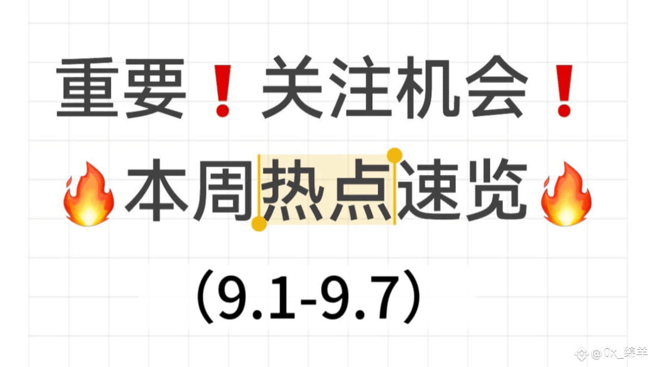 Ciao a tutti~Ci vediamo puntuali domenica sera! Questa settimana nel mondo delle criptovalute è arrivato un “grande evento” - wlfi è online, vari eventi interessanti si susseguono, avvisi di quotazione, risultati di nuove emissioni, investimenti e notizie sugli airdrop non si sono fermati, ho organizzato i punti principali per settore e ci sono promemoria per i momenti chiave, dai un'occhiata per vedere se hai perso qualche opportunità.