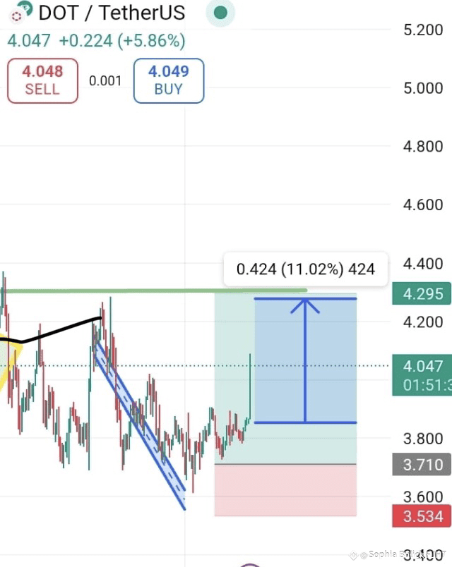 • Resistance Zone: Around $4.29–$4.30 (marked in green) – if broken, DOT could push higher.