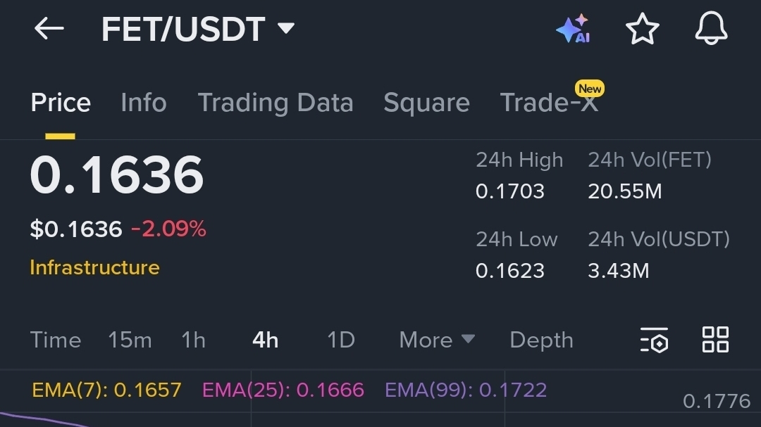 Osservando il grafico della valuta $FET su un intervallo di 4 ore, vediamo chiaramente che il prezzo attualmente si attesta a livelli di 0.1636. Il prezzo sta affrontando pressioni dalle medie mobili, il che ci spinge ad aspettare e osservare piuttosto che affrettarci. L'ultimo minimo formatosi a 0.1582 è l'area che stiamo monitorando ora con grande attenzione.
