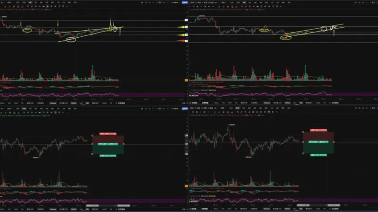 A livello di 4 ore, scende 1959, guardando verso il basso a 1908-1863. Il secondo Bitcoin non sembra avere l'intenzione di rompere verso l'alto. Guardando alla linea K cerchiata in bianco, tutte sono linee K non valide. Successivamente, rompendo la forma della bandiera, deve tornare all'interno della forma della bandiera per avere un'opportunità di movimento verso l'alto. Finché il secondo Bitcoin non rompe sotto l'intervallo di supporto di 1961-1940, non continuerà a testare nuovamente. Se l'intervallo di supporto non riesce a reggere, 1905 testerà sicuramente nuovamente. Se non riesce a reggere 1865, arriverà; riunione sospesa.
