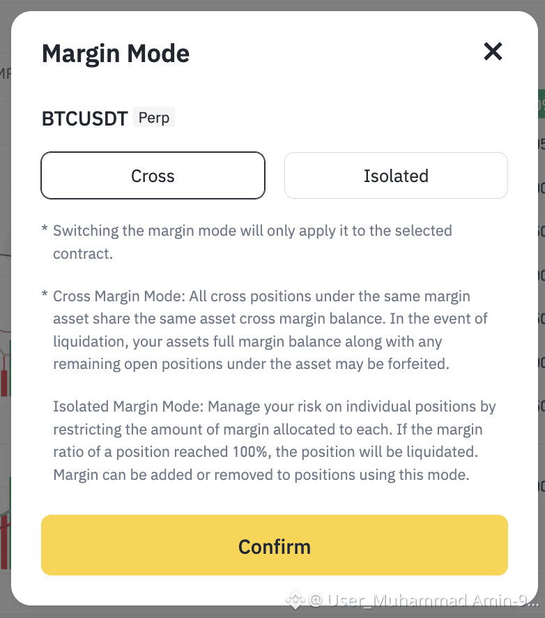 Please make sure that you've selected the preferred margin mode before opening any orders or entering any positions;