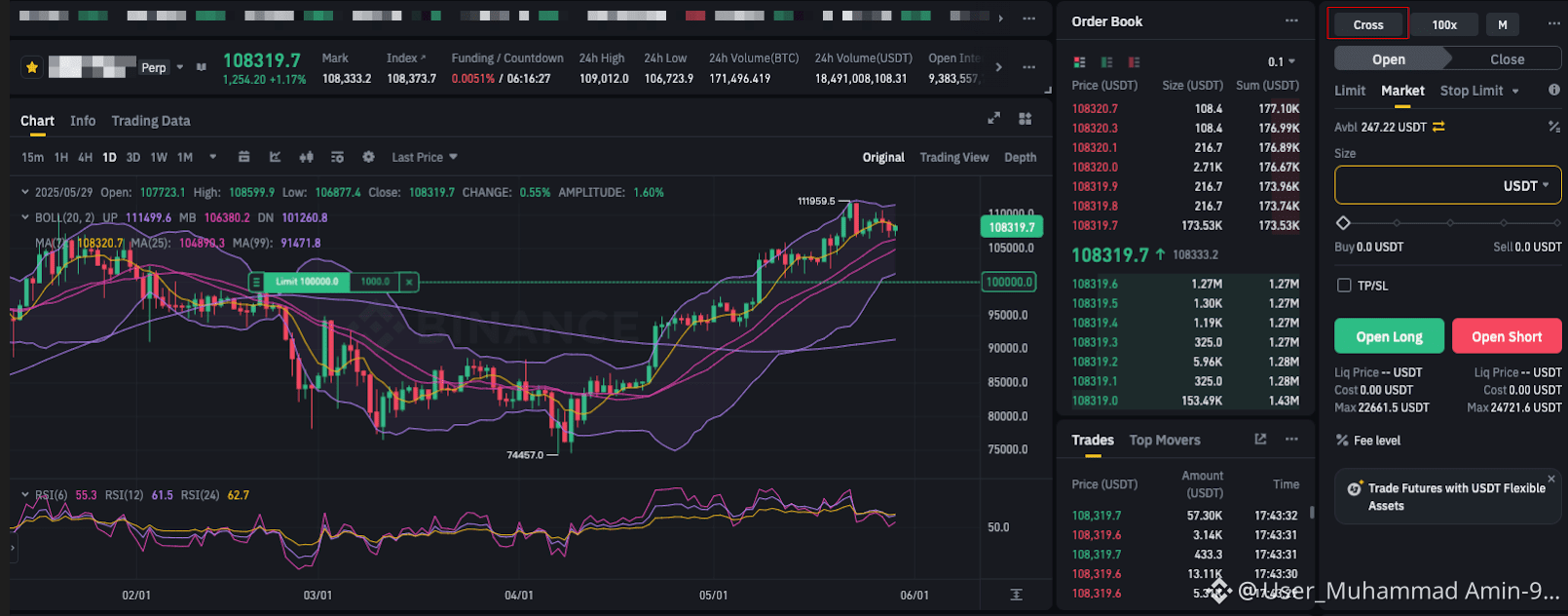 Cross Margin Mode shares your margin balance across all open positions on the same type of assets, e.g., If you have selected Cross Margin Mode on BTCUSD Perpetual, the open positions of BTCUSD Perpetual share the margin balance of BTC only.