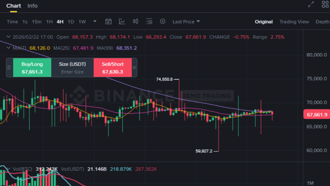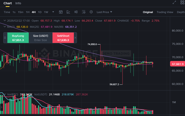 Il prezzo attuale è attorno a $67,600, e la struttura mostra: